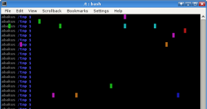 export PROMPT_COMMAND='if [ $RANDOM -le 32000 ]; then printf "\\0337\\033[%d;%dH\\033[4%dm \\033[m\\0338" $((RANDOM%LINES+1)) $((RANDOM%COLUMNS+1)) $((RANDOM%8)); fi'With each appearance of the bash prompt this command paints one pixel in the console with a random color. No respect to important content beyond this painting. That can really be annoying and he was always wondering why this happens! For more than one month, until now!