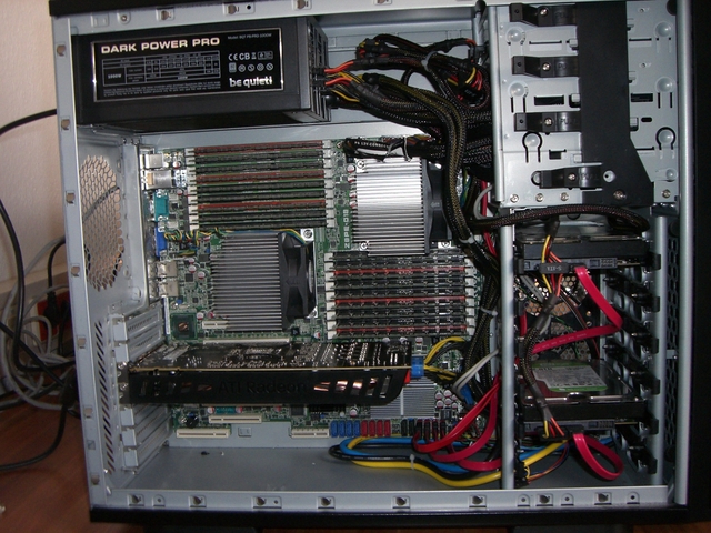 These biologists ordered the server without asking us, I think the salesmen noticed that they don’t have expertise. The money is provided by the university, so no need to design for efficiency. And that is how it came that they send the hardware (2 Xeon-DP 5500, 72 GB mem) in a desktop case with a Blu-ray writer, a DVD-writer, a GPU with 2.72 TeraFLOPS (afaik they don’t want to OpenCL) and: NO CHASSIS FANS!! Ouch..