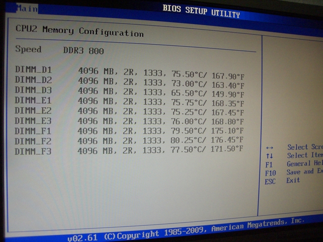 After setting up a Linux and installing lm-sensors the CPU’s are running at >75°C, fighting for air. Of course we immediately turned off the hardware! After half an hour we were able to start it again and took a look at the BIOS sensors for the memory. No time to get bored while the temperatures raised up to 80°C and more in less than 5 min, see figure 2… Of course time to turn it off again! Don’t want to hazard a nuclear meltdown..