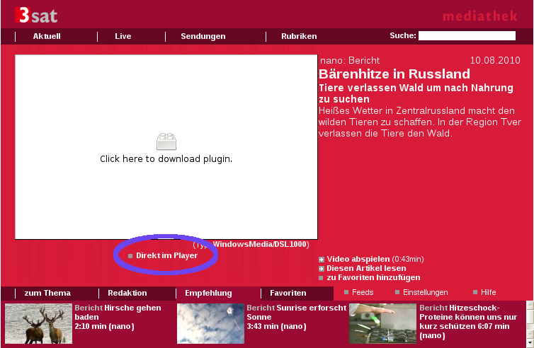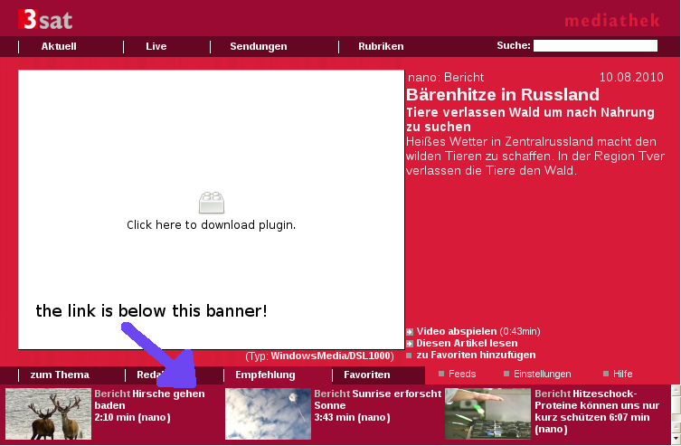 Since a while the mediathek of 3sat doesn’t work correctly for me.